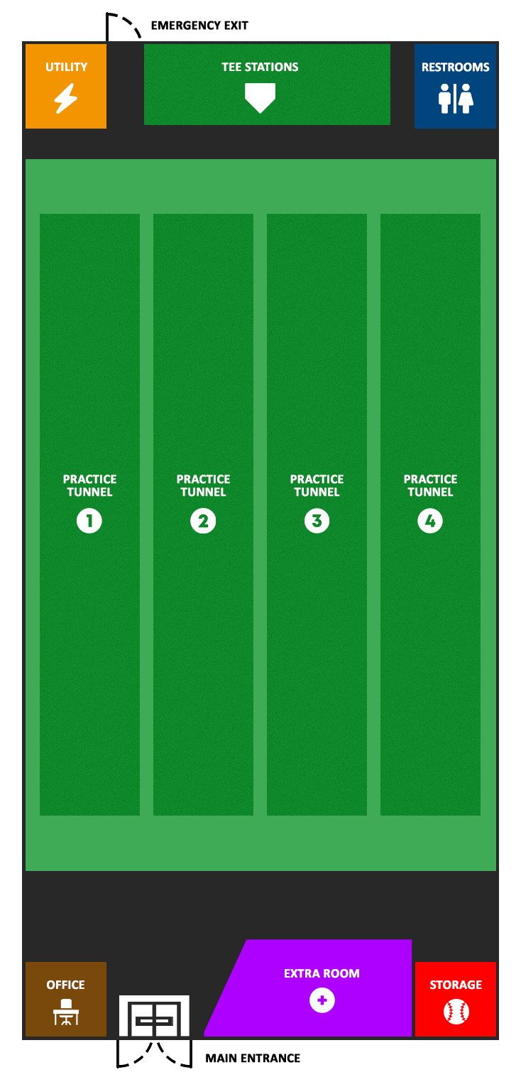 The Lumber Yard is a locally owned indoor baseball and softball practice facility located at 1302 West Main Street in Robinson, Illinois. The 7,200 square foot space houses four 70 foot practice tunnels that can be opened up into larger practice areas. In addition to the main batting cages we have multiple tee stations for further batting practice.